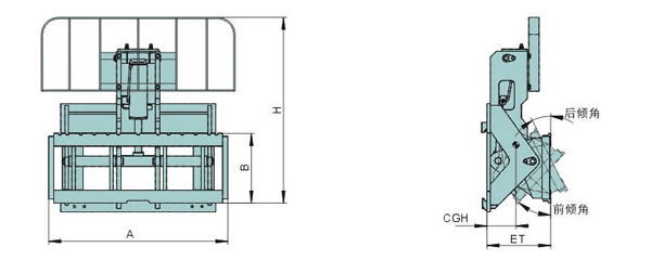 Xe nâng có bộ càng đổ có độ nghiêng nghiêng đổ càng (45 / 25 độ) lớn hơn so với càng nâng thông thường ( 12/6 độ).