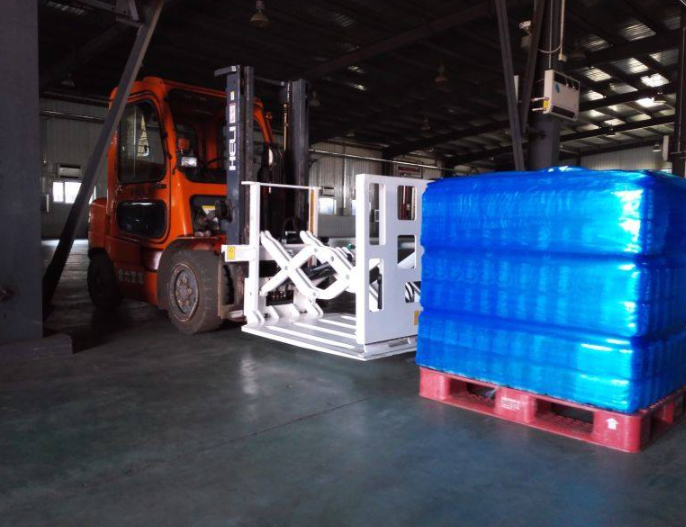 4. Tiến xe nâng vào đặt lưỡi càng nâng dưới mặt dưới tấm Slip Sheet.