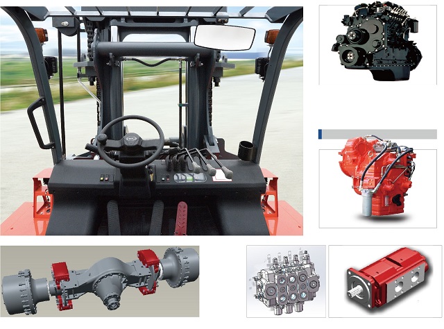 Hộp số : Do tập đoàn Anhui Heli sản xuất với hơn 40 năm kinh nghiệm sản xuất cầu và hộp số cho xe nâng hàng. Hộp số có 04 cấp số vì vậy tiếc kiệm nhiên liệu hơn.